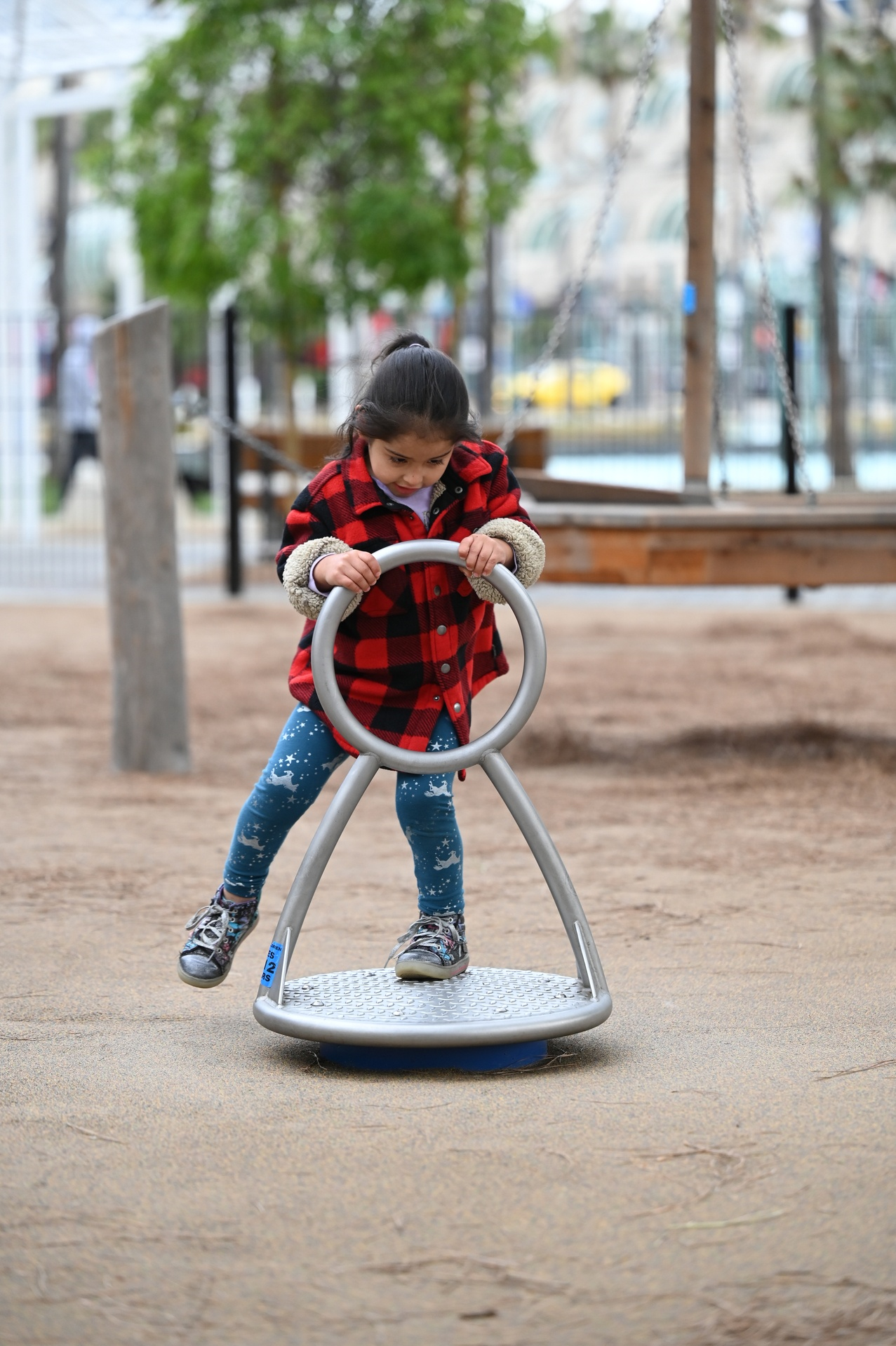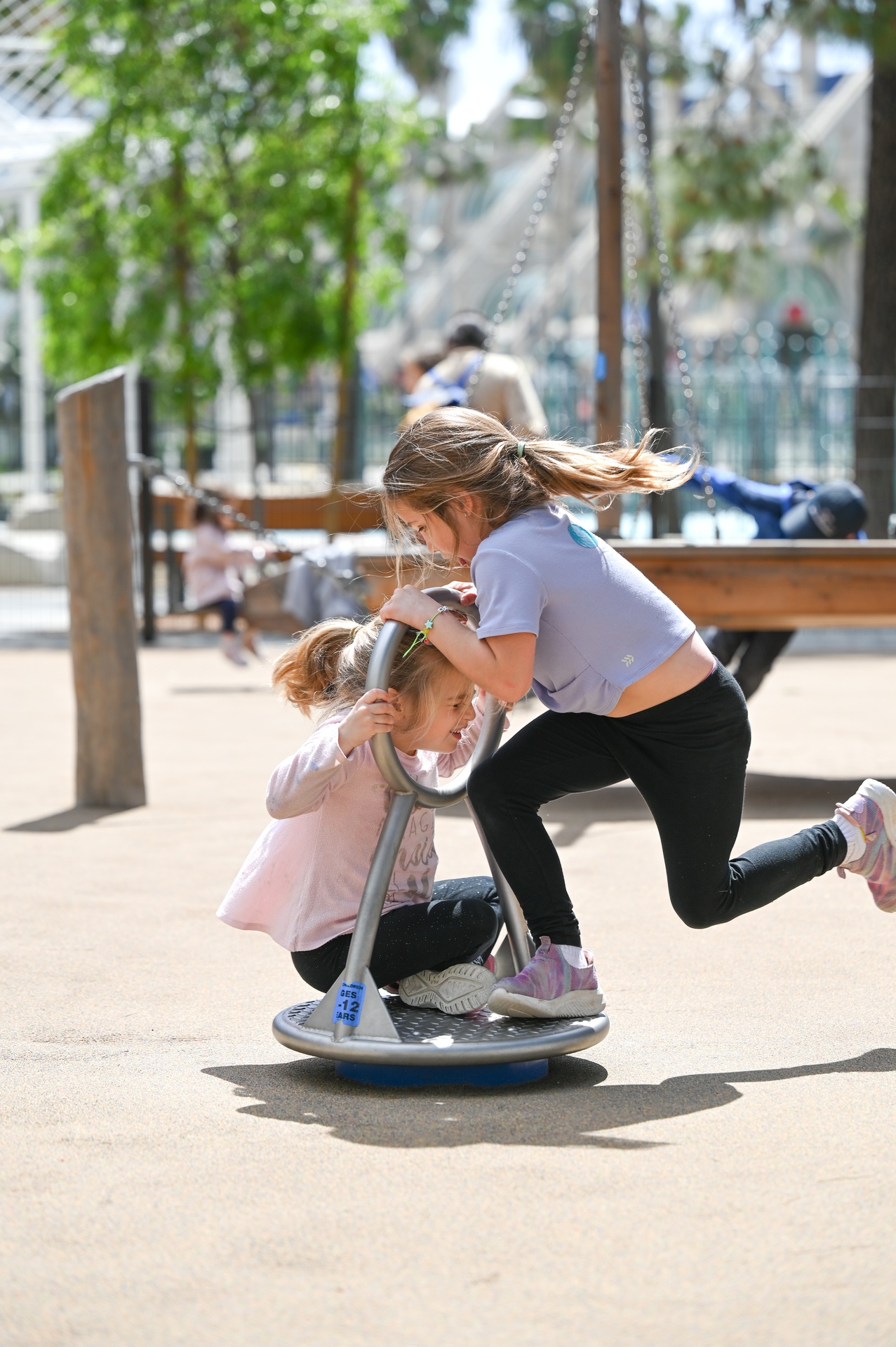 Der leichtgängige Kreisel wird durch ein Anstossen in Schwung gebracht, entweder sitzend mit der Hand, oder in aufrechter Position mit dem Fuss. Die Handlaufrohre dienen zum Festhalten. Der „Kleine Kreisel“ fordert zu ersten turnerischen Übungen heraus und eignet sich aus formalen Gründen auch als Spielpunkt in Fussgängerzonen oder auf anderen innerstädtischen Plätzen.