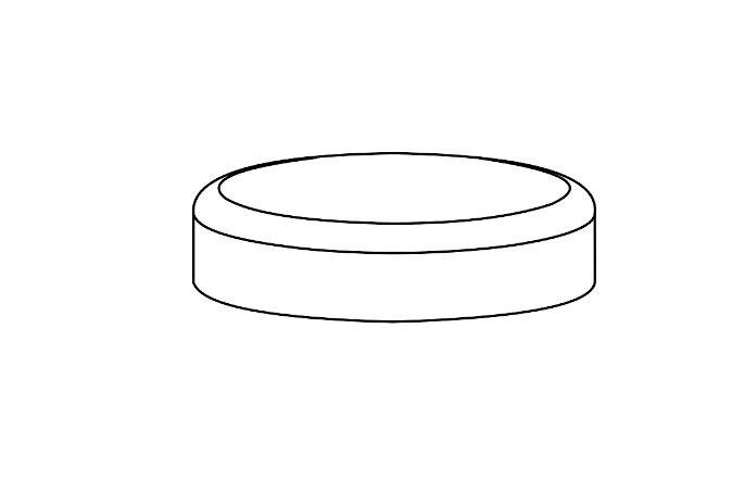 Sitzbubble aus Glasfaserbeton als Hohlkörper, oberseitig umlaufende Kante gerundet mit Radius 10 cm, Wandstärke ca. 3 cm.