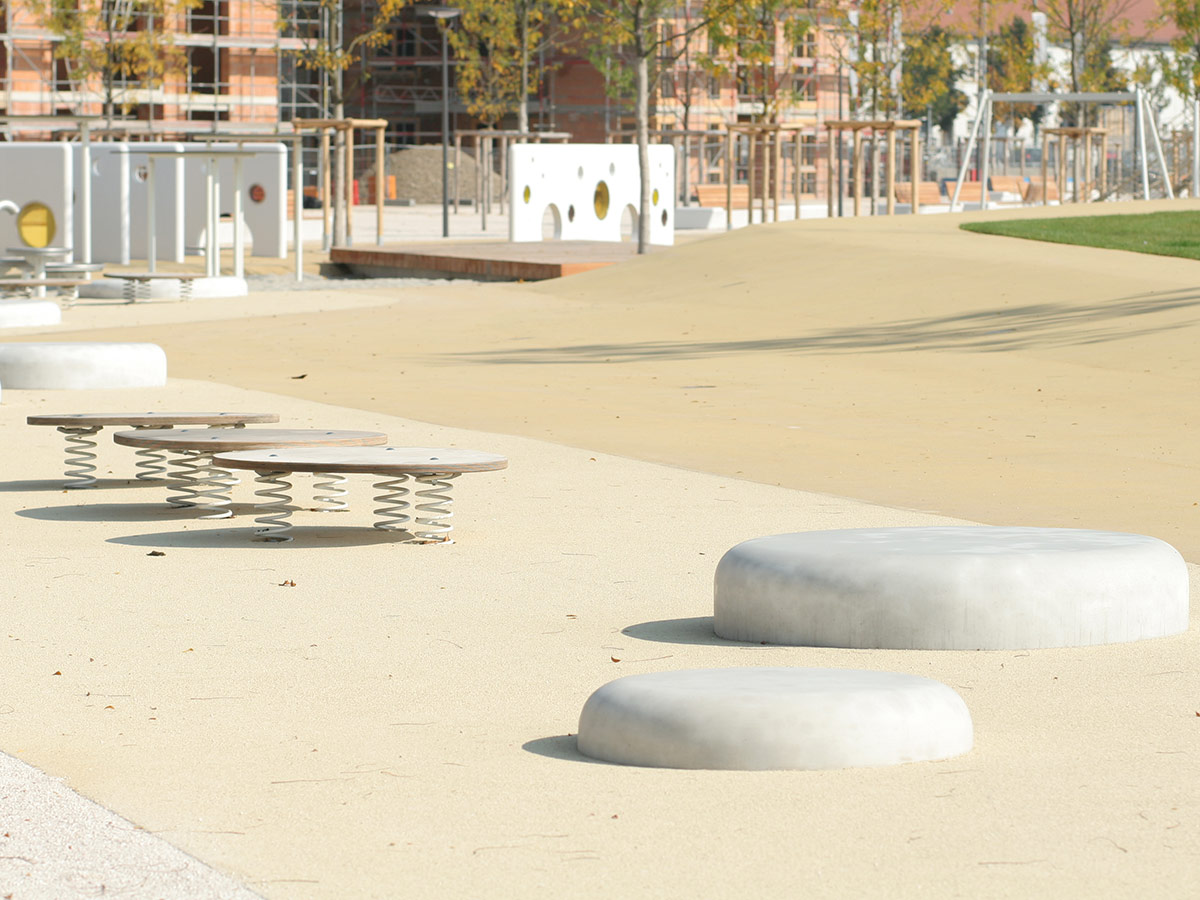 Sitzbubble aus Glasfaserbeton als Hohlkörper, oberseitig umlaufende Kante gerundet mit Radius 10 cm, Wandstärke ca. 3 cm.