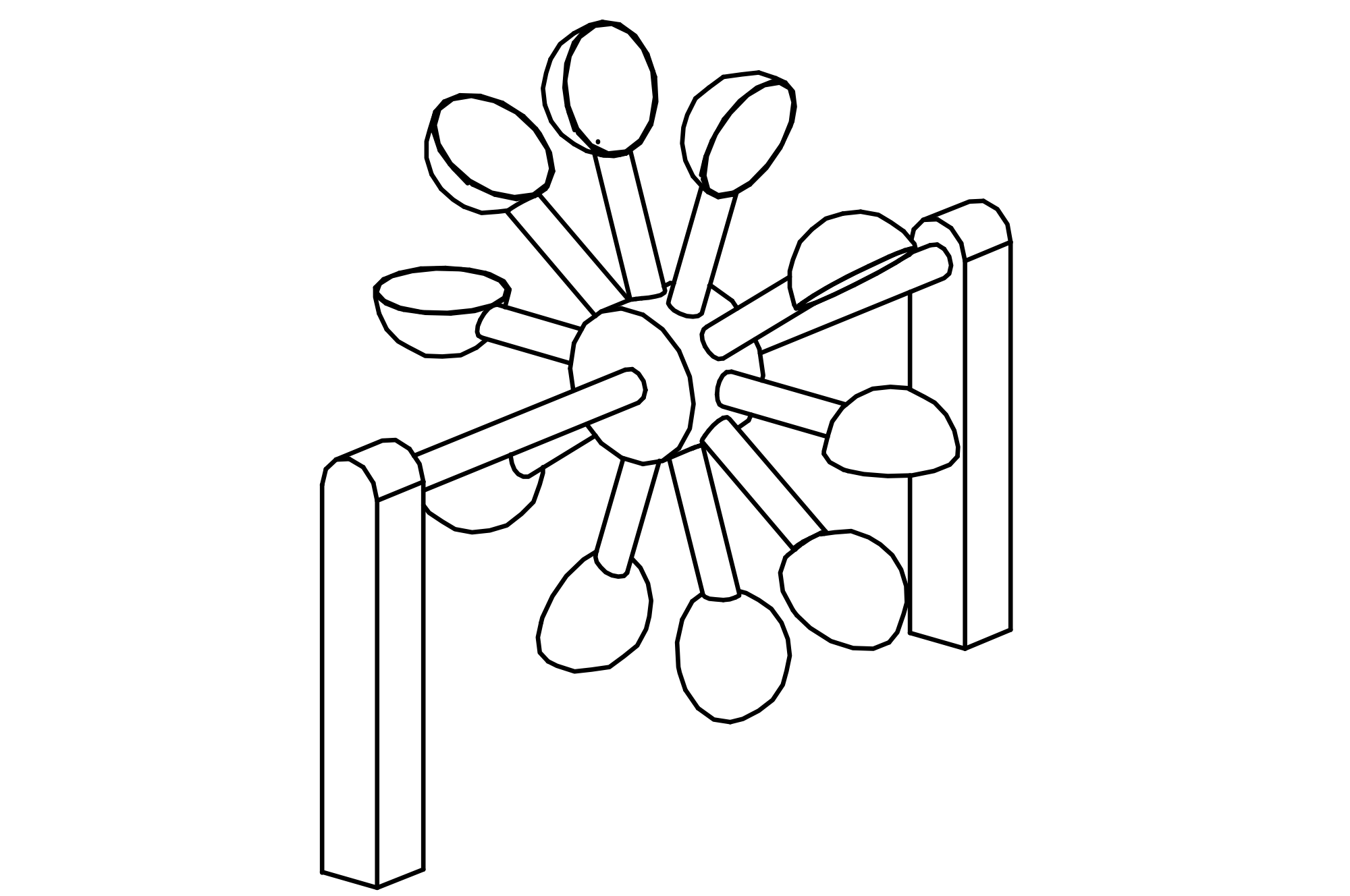 Die formschönen Schaufelräder aus Edelstahl sind ein Licht reflektierender Blickfang in einer Wasserspielanlage. Die kleinen, strahlenförmig angeordneten Schälchen haben für Kinder einen hohen Aufforderungscharakter. Wenn die Näpfchen gut sichtbar das Wasser auffangen, und dann durch die Verlagerung des Wassergewichtes das Rad in Bewegung gesetzt wird, arbeitet der „Mann“ an der Pumpe noch intensiver. Das grosse Schaufelrad kann auch so installiert werden, dass sich das Rad durch den Druck des Wasserstromes in der Rinne zu drehen beginnt.