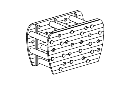 Equipment made of non-impregnated mountain larch, sawn timber heart-separated. Walls in block construction made of squared timber 14 / 14 cm Professional climbing holds made of sand-synthetic resin mixture with anti-rotation system to prevent unintentional twisting of the holds.