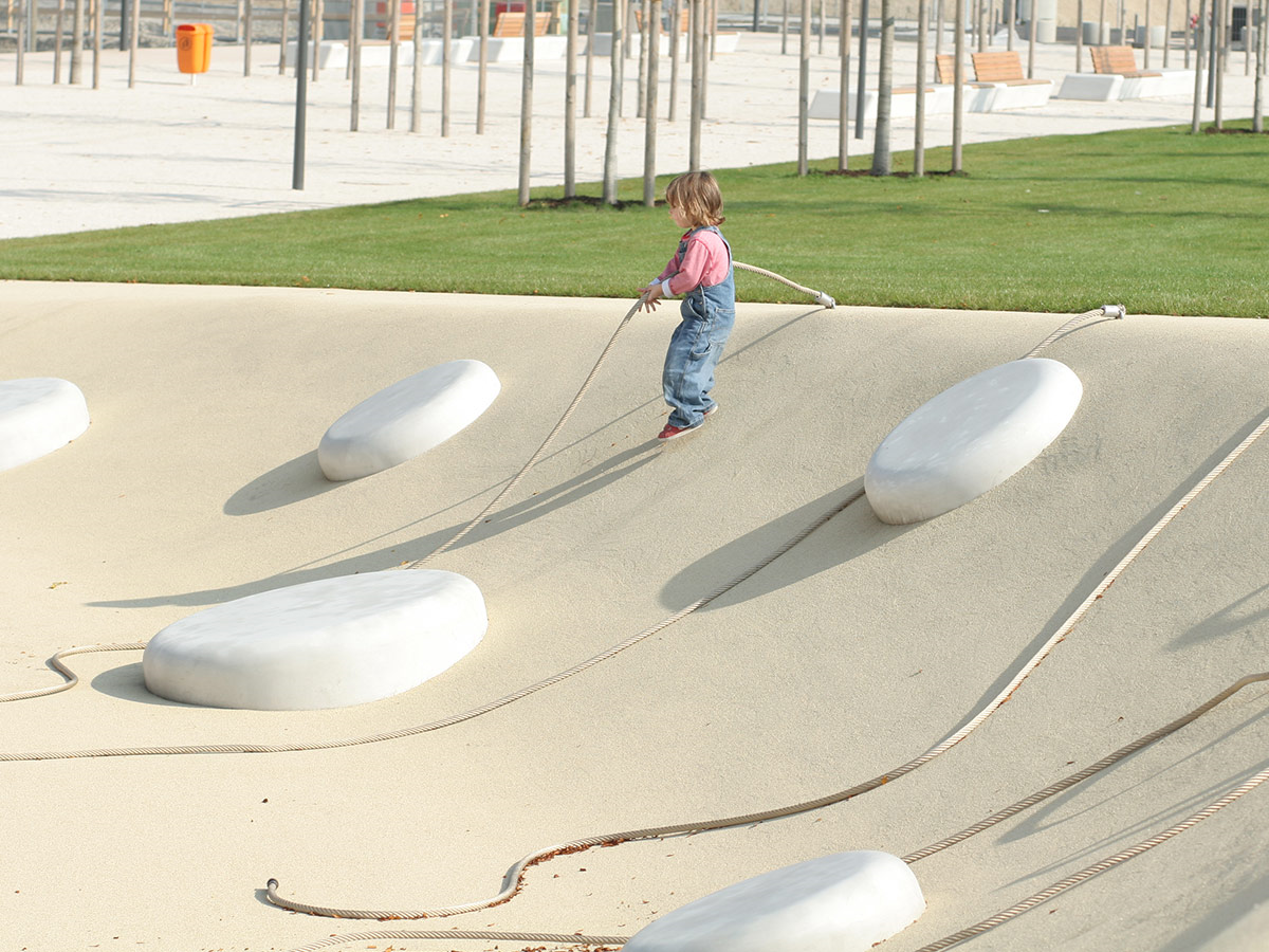 Sitzbubble aus Glasfaserbeton als Hohlkörper, oberseitig umlaufende Kante gerundet mit Radius 10 cm, Wandstärke ca. 3 cm.