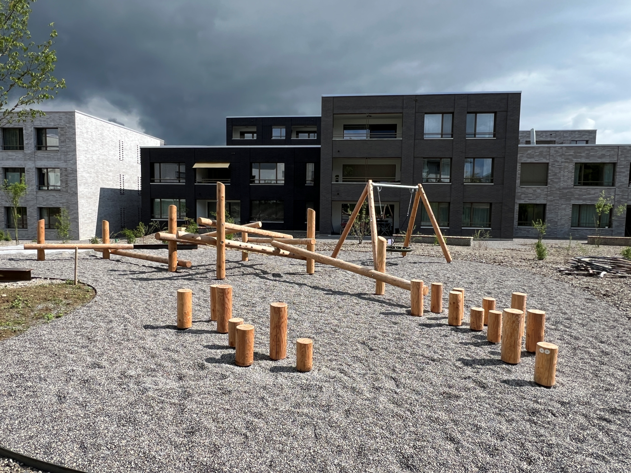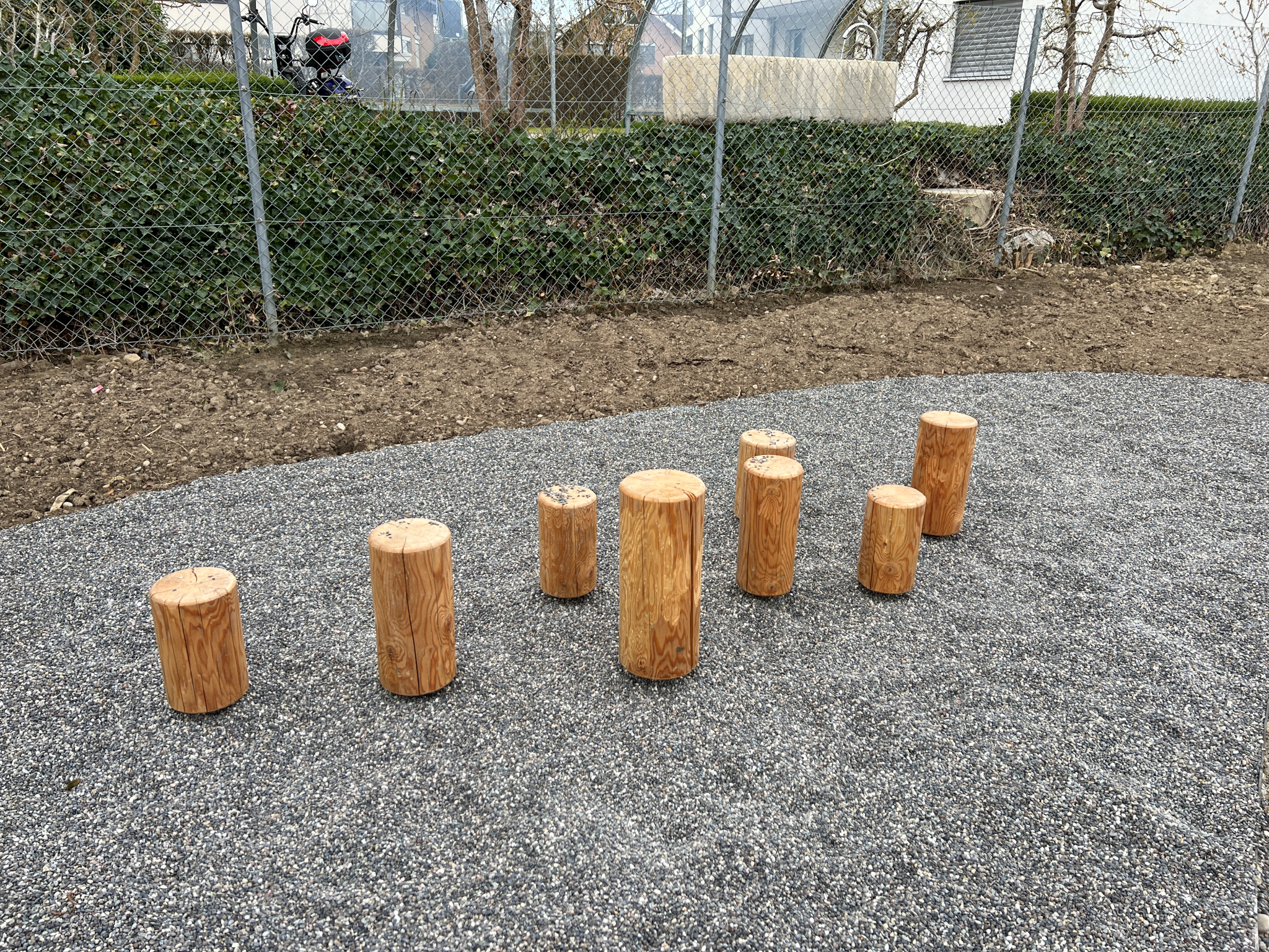 Geräte aus nicht imprägnierter Gebirgslärche, Kanten gerundet/gefast.