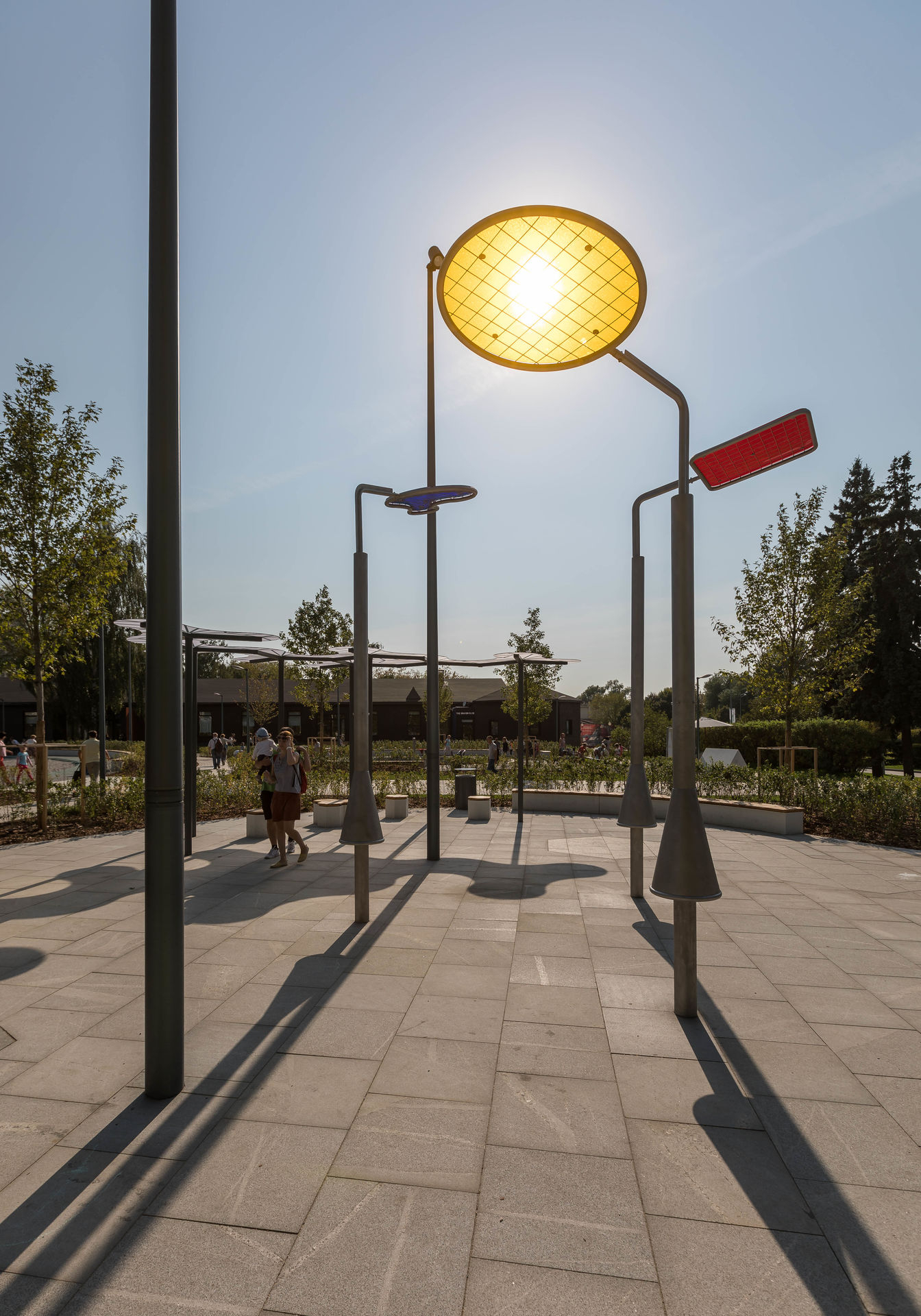 Geräte aus V2A glasperlengestrahlt. Robustes Drehlager mit Schmiernippel. Gitter aus Metall mit Füllung aus farbigem Acrylglas.