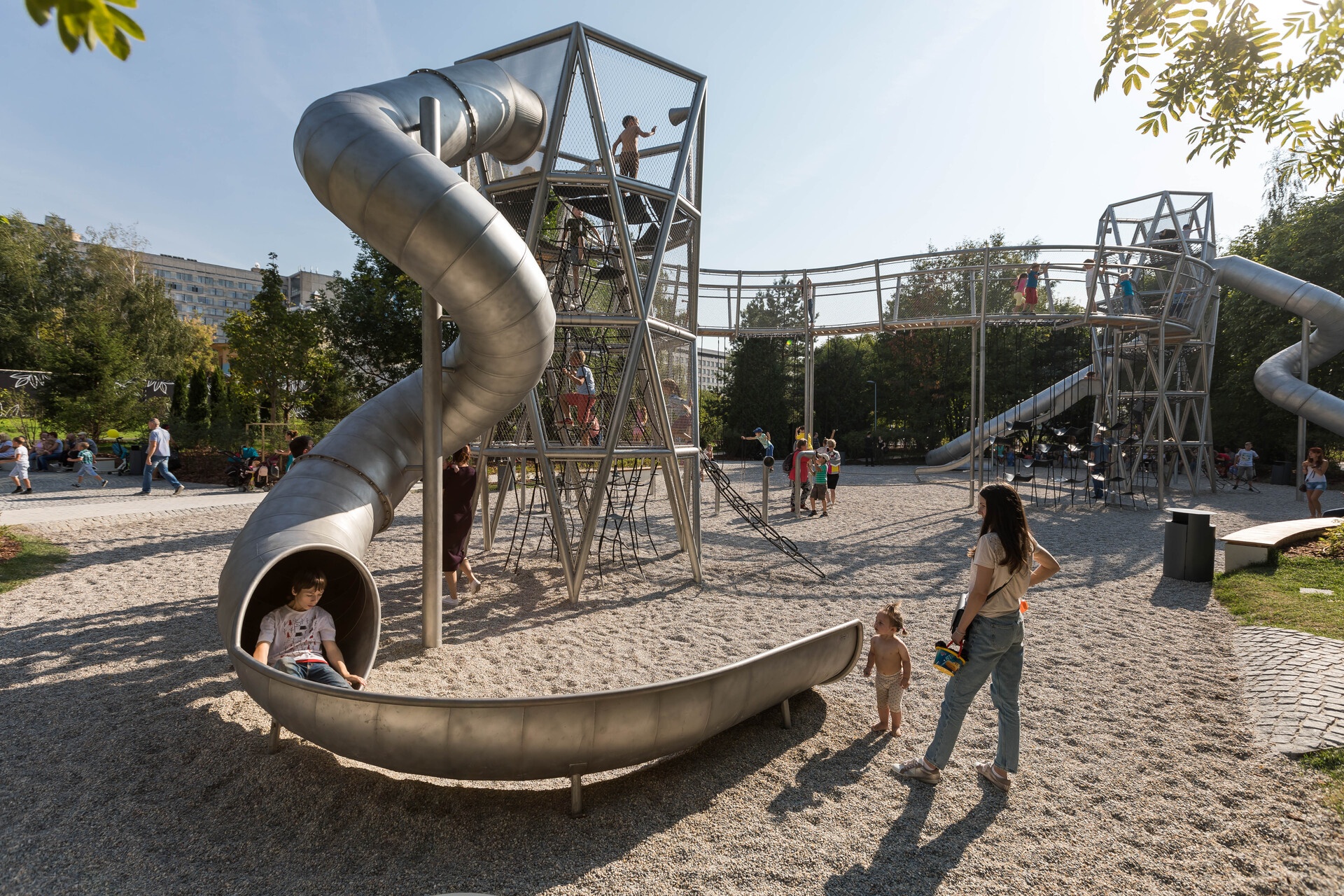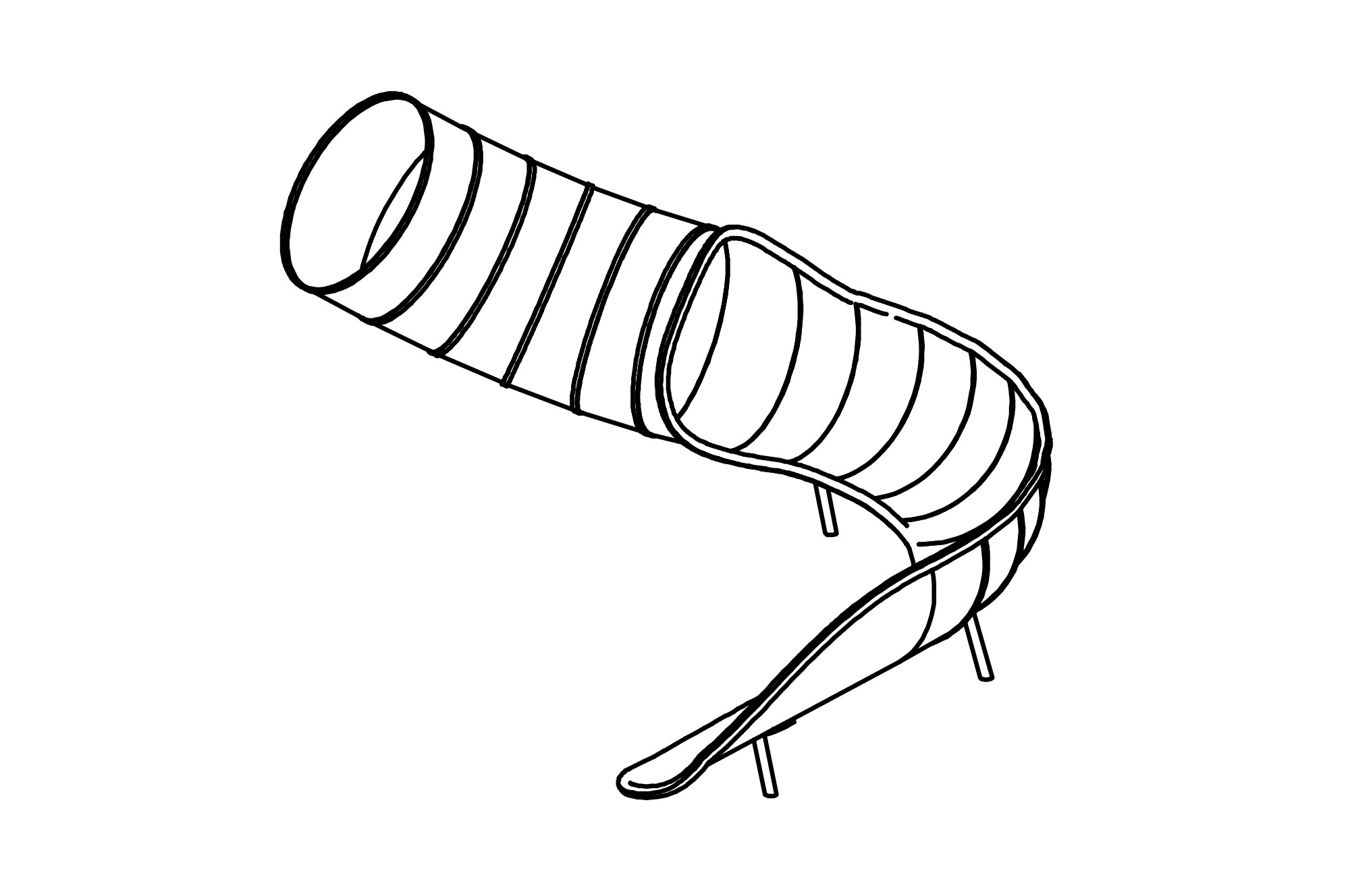 The elegant slide spout extends the range of applications, as it eliminates the need for long, straight spout elements to slow down the slide. The spiral run-out is suitable for individually planned trough or tunnel slides.