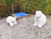 The gentle nature of these play and artfigures and their quiet expressions createan atmosphere of peace which facilitates a friendly encounter with the animals. The stone animals are ideal to stroke, touch and feel or incorporated into roleplaygames. Play figures such as these strengthen the identity of an area.