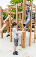 The Building Site is one of our ""work"" play offers and provides children with the opportunity to realistically mimic the working world of adults. Heavy loads can be moved using rollers, sand or gravel can be tipped into channels and tubes, a bucket wheel turns around and, depending on the model, a tipper tray also fills up. Carrying out a joint undertaking fosters creative cooperation. The structure should be installed in a bed of sand or gravel. This will allow the element of earth to be ideally incorporated into the play activity.