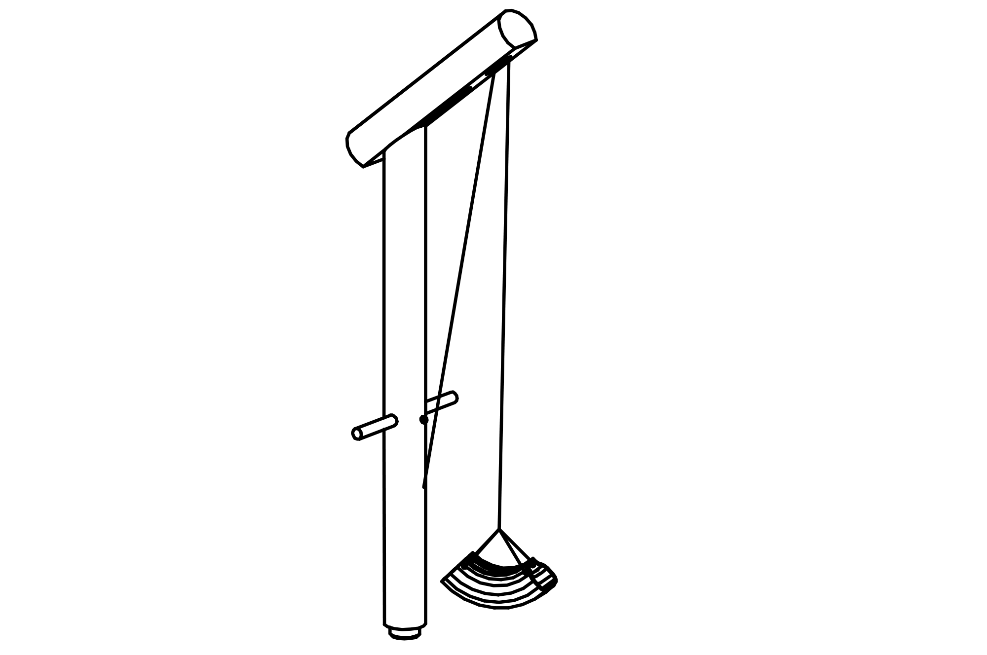 Device made of non-impregnated mountain larch, palisades white-peeled, chains made of hot-dip galvanised steel (V2A / V4A for an extra charge) welded before galvanising, short-linked, without eyelets on the connecting parts, easily replaceable and easy to shorten. Sand crane can be swivelled 350°, axially connected to post, maintenance-free rotating mechanism.