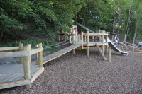 Appliance made from non-impregnated mountain larch, sawn timber heart-cut. Rinds (4-5 cm) white-peeled by hand, natural tree surface remains tangible and tactile. Hot-dip galvanised steel chains (V2A / V4A for an extra charge) welded before galvanising, short-linked, without eyelets on the connecting parts, easily replaceable and simple to shorten.