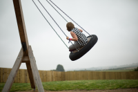 This swing is attached only at one point and can therefore move freely in every direction, enabling all kinds of swinging and turning games. The long swing chains make this piece of equipment interesting for young people. In their normal environment, they seldom find a satisfactory outlet for their natural energies. This big swing is designed to help meet that requirement. To set the swing in motion requires strength and skill. This equipment can be used to help even the most energetic of children let off steam, thereby avoiding these energies being directed on more negative activities.
