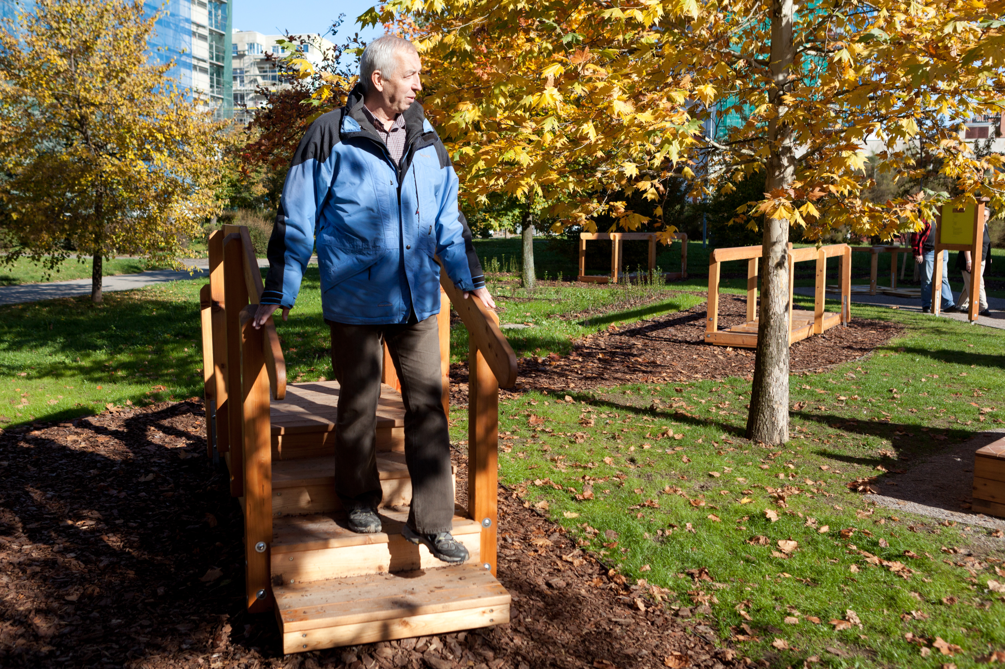 The stations, based on real-life situations, invite you to try them out and exercise. Alongside agility, stamina is also trained in this circuit course. The path is set up so that not all the obstacles need to be overcome and so that an accompanying person can give best possible help. Handrails on both sides at every station additionally ensure the highest safety.
