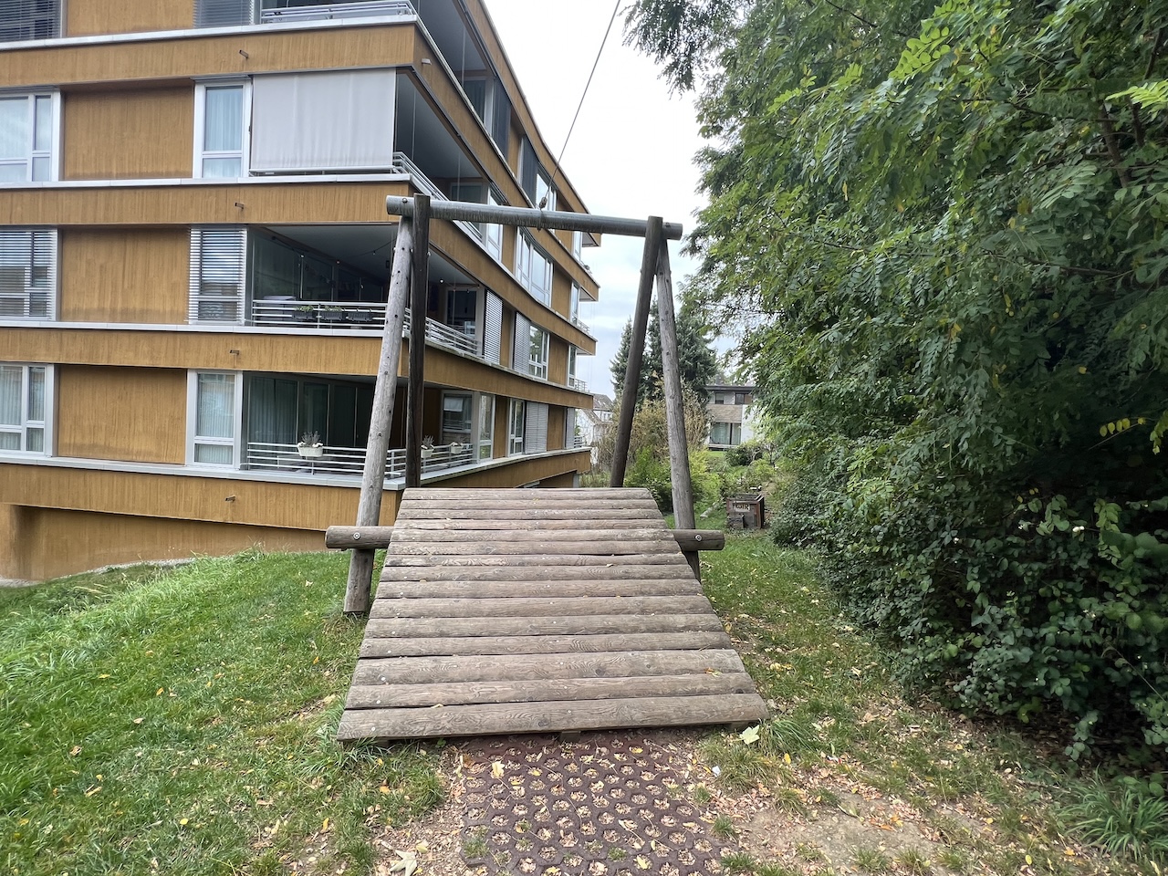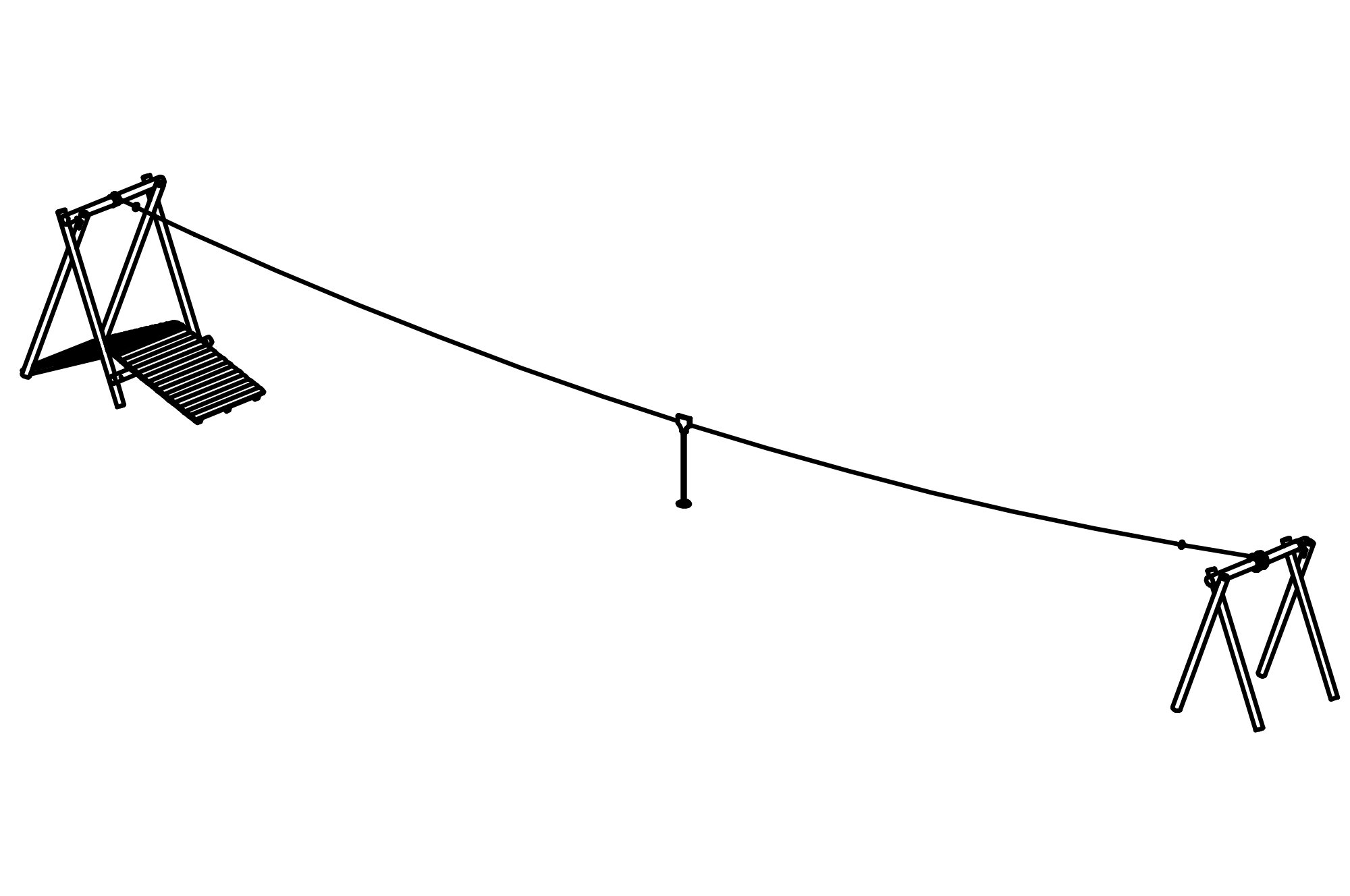 Appareil en mélèze de montagne non imprégné, dosses (4-5 cm) pelées à la main en blanc, la surface naturelle de l'arbre reste perceptible et palpable. Siège pendulaire avec bord de choc souple et insert en acier. Articulation de balancement, galvanisée à chaud, avec palier lisse en métal fritté et émerillon intégré. Mouvement de va-et-vient avec palier lisse en métal fritté, autolubrifiant. Notre chariot pour téléphérique est conçu comme une construction en sandwich. Grâce au mécanisme de roulement « encapsulé », un fonctionnement insonorisé est assuré. Le montage du chariot est possible sans démontage du câble. Chaînes en acier galvanisé à chaud (V2A / V4A contre supplément) soudées avant la galvanisation, maillons courts, sans œillets sur les pièces de raccordement, bien interchangeables et faciles à raccourcir.