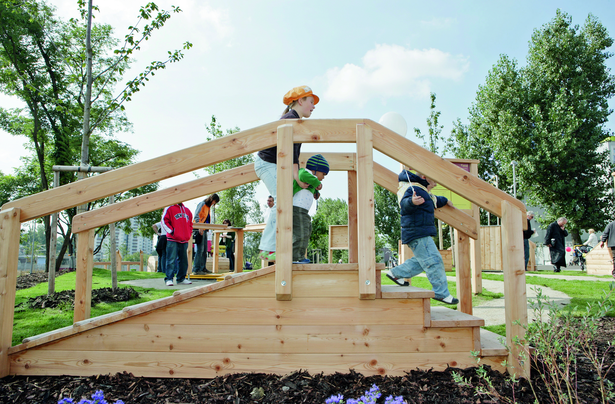 Des stations tirées de la vie quotidienne incitent à s'exercer et à essayer. Disposées en parcours, elles permettent d'entraîner non seulement l'habileté mais aussi l'endurance. Le parcours est conçu de manière à ce qu'il ne soit pas nécessaire de franchir tous les obstacles et que les accompagnateurs puissent apporter une aide optimale. Des mains courantes des deux côtés de chaque station offrent en outre un maximum de sécurité.