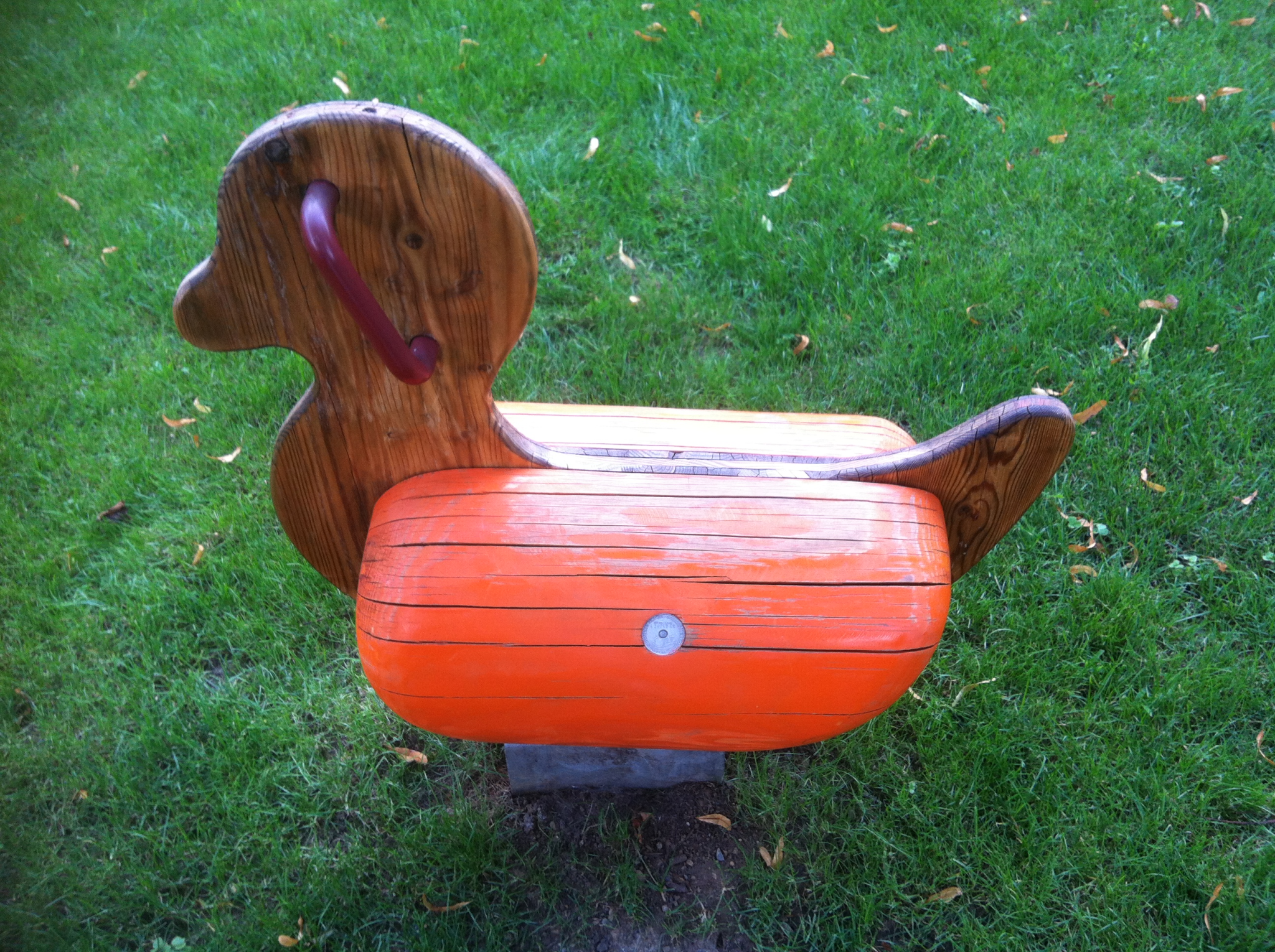 Gerät aus nicht imprägnierter Gebirgslärche, Schnitthölzer herzgetrennt. Mehrschichtplatte aus Dreischichtplatte (3 cm) bzw. Fünfschichtplatte (4 cm), hohe Formstabilität, wetterfest verleimt nach DIN EN 13353:2011. Wackelmechanik und Beschläge feuerverzinkt. Farbgebung mit lösungsmittelfreiem Acryllack.