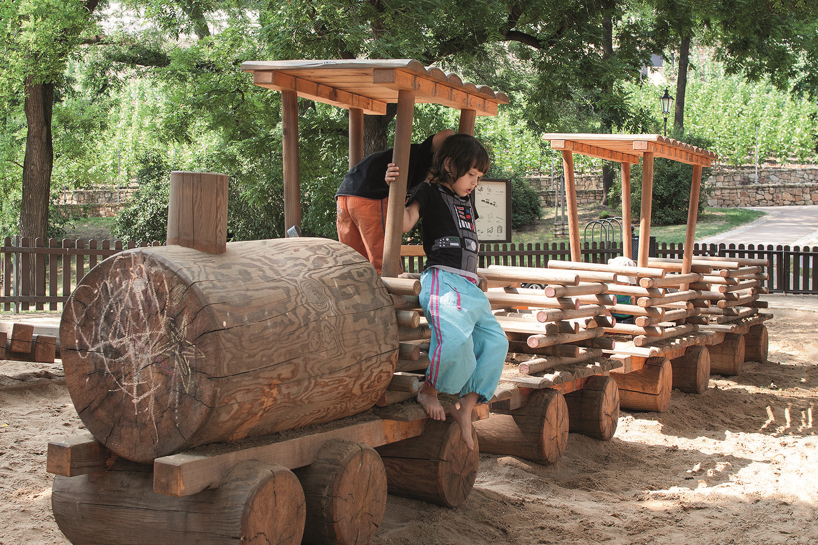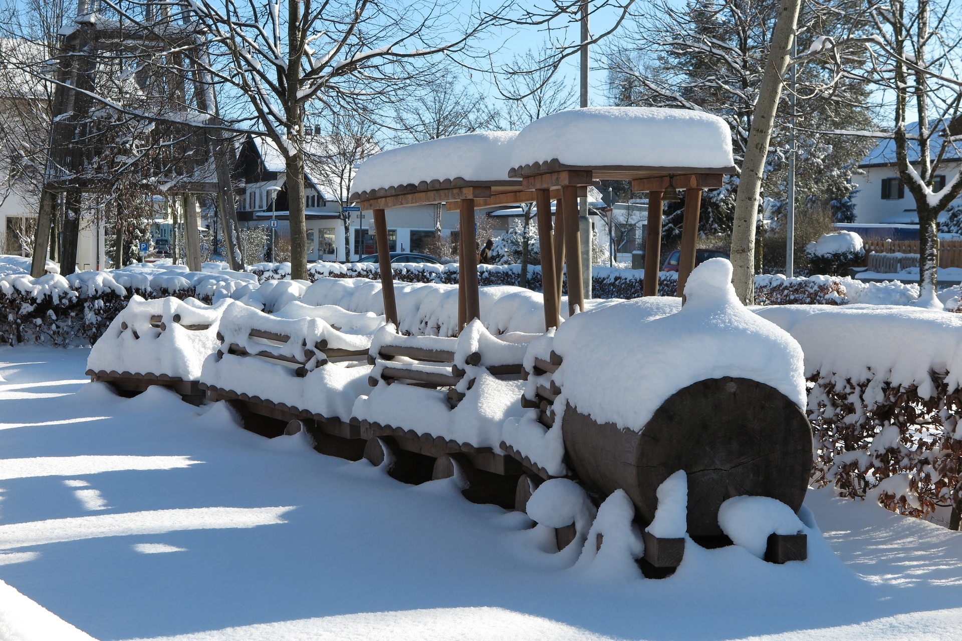 Gerät aus nicht imprägnierter Gebirgslärche, Palisaden weissgeschält, Schnitthölzer herzgetrennt. Schwarten (4-5 cm) von Hand weissgeschält, natürliche Baumoberfläche bleibt erlebbar und fühlbar. Gezielter Entlastungsschnitt als wirksame Gegenmassnahme gegen starke Trocknungsrisse. Glocke aus Messing.