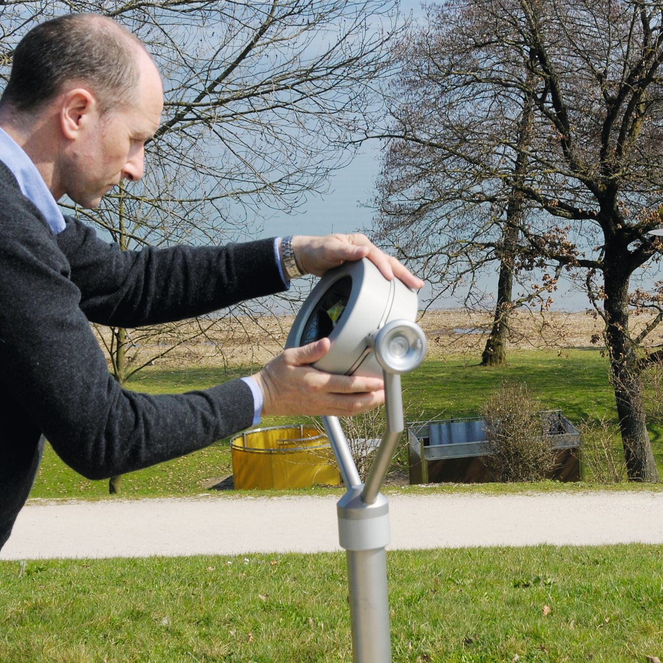 Appareils en V2A sablé aux billes de verre. Mouvements de va-et-vient avec palier lisse en métal fritté, autolubrifiant. Prisme en verre massif poli, enchâssé entre deux plaques de verre de sécurité, dans un support en acier inoxydable, pivotant et inclinable de tous les côtés.